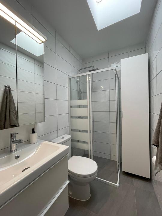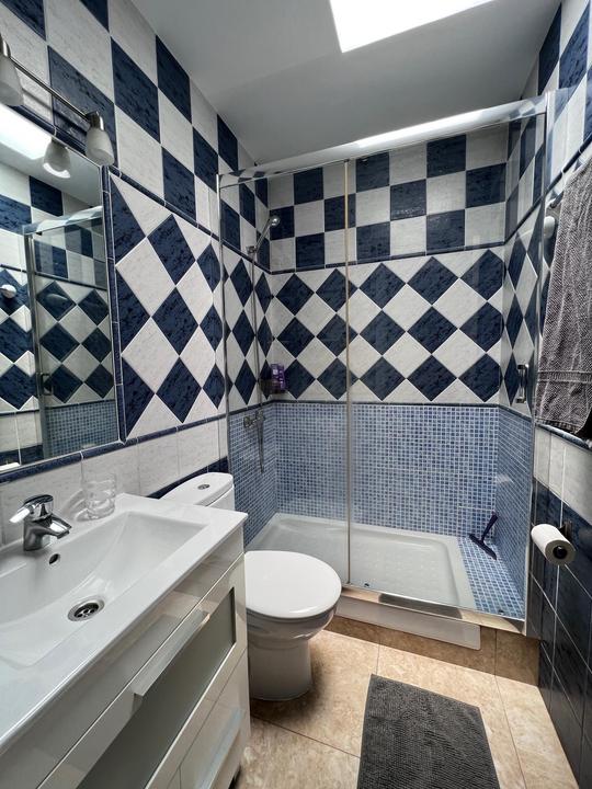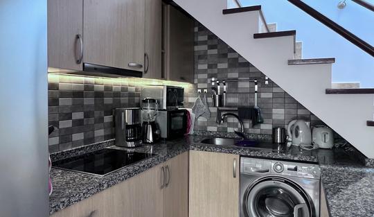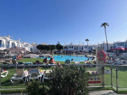 The communal poolarea is gated for safety and equipped with a large saltwater pool and a childrens pool, free sunbeds and artifical grass.